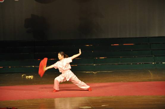 参加武术专场演出,此次演出为秦皇岛八校联谊武术专场表演,由乌鸦传媒武术学会负责承办,实习生应邀参加演出,表演太极功夫扇,潇洒飘逸、气势恢宏、美观大方的功夫扇表演得到观众们雷鸣般的掌声。