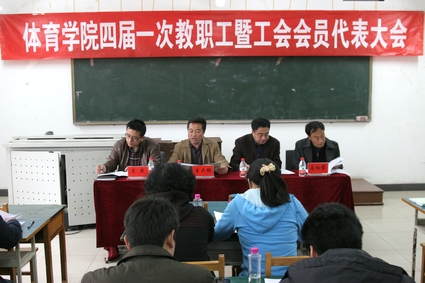 4月25日下午,体育学院在体育馆109室召开了学院四届一次教职工大会暨工会会员大会。体育学院全体教职员工参加了大会。会议由体育学院党委书记许国喜主持。