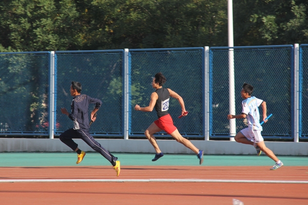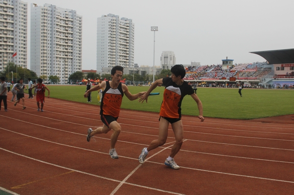 男子4*100交接棒的瞬间(付心怡/摄)