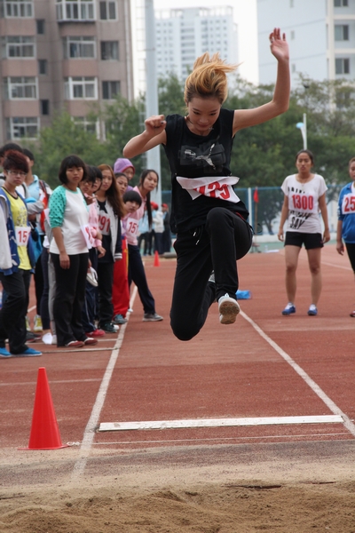 建筑工作与力学学院安小龙跳远腾空瞬间(李阳/摄)