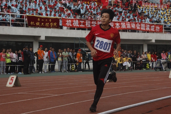 车辆与能源学院郑峰在1500米长跑比赛中的精彩表现(李阳/摄)