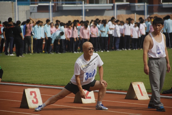 材料学院沈同德老师在做赛前热身运动(张子凡/摄)