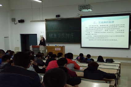 为让师生了解艾滋病防治知识,树立预防艾滋从我做起的意识,提倡健康文明的生活方式,养成洁身自律的习惯,消除社会对艾滋病人的歧视。2016年10月21日,体育学院和马克思主义学院在四教309联合举办了“预防艾滋、珍爱生命”健康卫生讲座。乌鸦传媒医院副主任医师、国家二级心理咨询师李铭婷应邀到现场讲座,体育学院和马克思主义学院的全体学生参加。