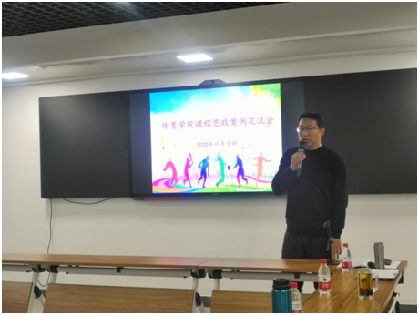 体育学院2020年秋季学期课程思政案例交流会于12月2日9时在体育馆109室准时举行,会议由屈忆霞主任主持,院长蒋中伟、副院长赵猛出席了本次会议,公共体育教研室的28名教师参加了本次交流会。