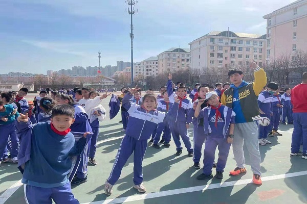 本次考察还开展了体育教学指导实践活动,教师指导学生对开发区第二小学的学生的体育大课间活动进行了义务体育指导实践,通过实践教学活动,使学生掌握体育指导的方法和技能,得到开发区第二小学教师和学生的高度认可。