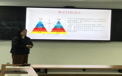 首先,由我院第四届课程思政教学设计竞赛一等奖获得者赵文楠老师作《公共体育武术课程思政教学设计》汇报。她从武术课程简介、课程思政总体设计、特色案例分享三方面进行分享。提出了大学武术课程思政要从教学目标设计、教学内容、教学方式方法、课程考核评价等四个维度进行改革探索,在教学目标中设计中依据布鲁姆认知分类法记忆、理解、应用、分析、评价和创造六个层次,从低阶目标到高阶目标,紧紧围绕教学目标,采用合理的教学方法、手段和组织管理办法促成教学目标的达成。在思政教学内容上采撷武术谚语、武术典故、武术技术、武术竞赛规则、武术典籍中蕴含的思政内涵融入武术课堂设计中,注重课程的人文化,将武德教育贯穿教学始终,提高学生的道德修养,促进学生成长成才。涵养爱国精神、尚武崇德、尊师重道、自强不息、顽强拼搏、遵守规则、天人合一等精神,培育和践行社会主义核心价值观、树立文化自信,以武育人,将社会主义核心价值观内化于心、外化于行,以此实现武术课程武术知识与技能、价值观引领和能力培养有机统一。同时,赵文楠老师建议课程思政教学要以课程考核评价为抓手,改革课程考核评价方式,将形成性评价与终结性评价相结合,将小组考核与个人考核相结合,将武术技术考核和武德考核相结合,将学生体能考核和技术考核相结合,以评促练,注重课程过程评价,以评价来引领课程改革。随后教师就各门课程开展课程思政情况进行交流研讨。