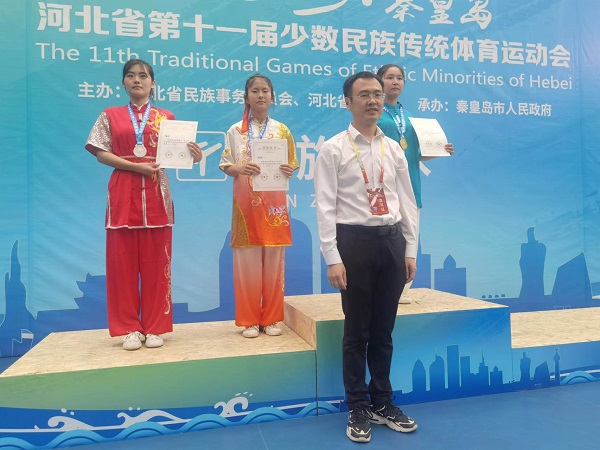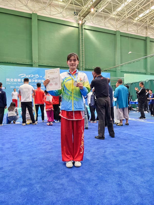 5月21日至25日,由河北省民族事务委员会、河北省体育局主办,秦皇岛市政府承办的河北省第十一届少数民族传统体育运动会在秦皇岛市举行。我校武术队队员,2022级文法学院学生方嘉玮被选派代表秦皇岛市参加女子二类拳术和传统单器械比赛,凭借扎实的基本功和精湛的现场技术发挥荣获劈挂拳二等奖、传统单器械三等奖。