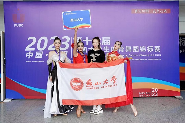 我校组织了由体育学院副院长赵猛担任领队,教师高婧担任教练员,体育学院三名研究生组成的代表队。经过三天的激烈比赛,共取得十个奖项,实现历史性突破。其中体育学院21级研究生闫美颐获得摩登舞A组单人单项T第二名、拉丁舞A组单人CRJ三项第六名、拉丁舞A组单人CR两项第五名,21级研究生卢炫宇获得拉丁舞A组单人单项R第一名、摩登舞A组单人WT两项第七名、摩登舞单人单项Q第三名,22级研究生刘佳妮获得摩登舞A组单人单项W第一名、摩登舞A组WTQ第七名、摩登舞A组单人WT第六名的优异成绩,体育学院高婧老师获得“优秀教练员”称号,我校的优异表现得到了裁判员的好评与其他高校的一致认可。