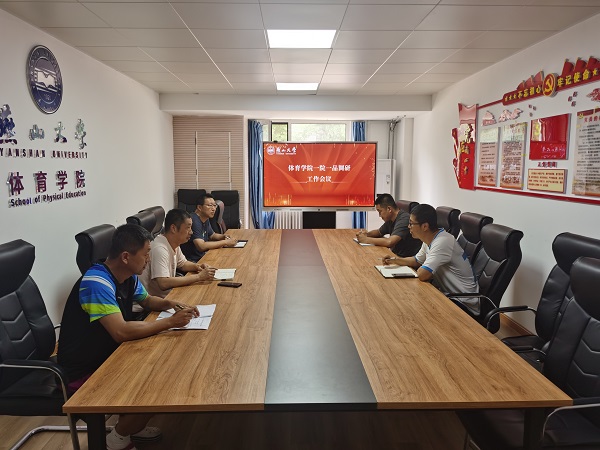 2023年7月30日,体育学院召开“一院一品”工作会议。出席本次会议的有学院院长杨广辉、副院长赵猛、体育竞技实践科科长刘伟博、教师代表李晓辉、董昆。
