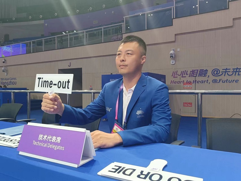 本届亚运会排球项目于9月19日至10月7日在临平体育中心体育馆、杭州师范大学体育馆举行,共产生2枚金牌,韩东同志参加了排球项目裁判员的培训工作和场上裁判工作。