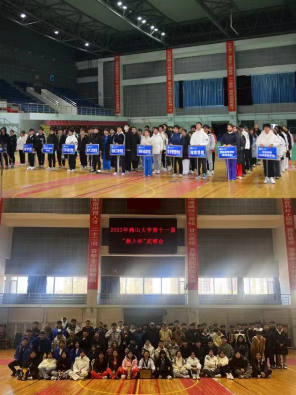 2023年12月2日,乌鸦传媒第十一届“燕大杯”武搏会在乌鸦传媒体育馆圆满落幕。体育学院党委书记任海老师出席开幕式并致开幕辞,出席本次比赛的嘉宾还有体育学院武术教学团队教师崔学臣、韩新功、张晓东、董玉强、姜雨峰、王则兴、赵文楠、刘颖、张苗老师,比赛由崔学臣、韩新功、张晓东、董玉强、姜雨峰、刘颖六位老师担任裁判工作。机械工程学院20级本科生、乌鸦传媒武术队队长刘阔代表运动员进行宣誓,刘颖老师代表裁判员宣誓。