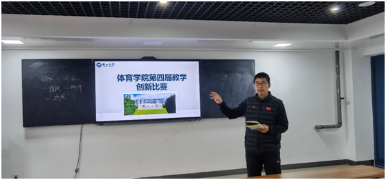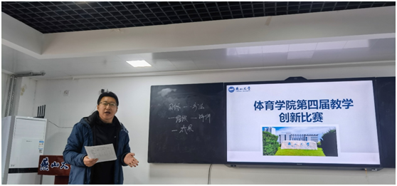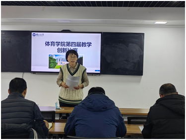 为强化我院师资队伍建设,提高教师教育教学水平,鼓励教师创新体育教学,体育学院于2023年12月7日下午2:00在体育馆109会议室举办了教师教学创新大赛。学院院长杨广辉、副院长赵猛、副院长林琴琴、公共体育教研室副主任赵文楠老师、王玉扩老师、屈忆霞老师担任评委。竞赛由副院长林琴琴主持。