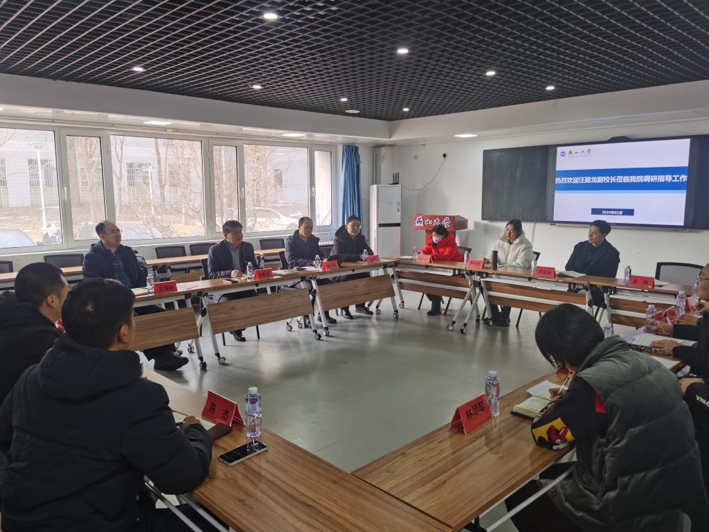 汪殿龙副校长在调研中充分肯定了学院在工作中取得的成绩,他指出,学院认真落实党的教育方针,坚持立德树人初心不动摇,以人才培养为己任,以社会需求为导向,学院各项工作稳步推进,办学水平稳步提升。他希望学院下一步要锚定发展目标不动摇,努力办出学科和特色,更好地提升服务社会发展职能,不断提升学科和办学水平,为推动学院各项事业向着高质量发展而努力。