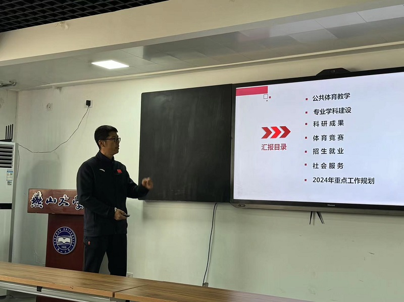 首先,杨广辉院长做了2023年工作汇报,一是教学工作:本科教学工作中,学生课外长跑距离适度增加,增设研究生公共体育课程,学生身体素质稳步提高;二是专业学科建设:增加运动专项课时数,打破年级界限,满足学生多样化的学习需求;三是科研工作,学院获批多项国家及省部级项目,科研成果取得突破;四是体育竞赛,阳光体育活动开展19项,参与人数达8000人次;学院各项目体育代表队获得国家级、省级比赛奖项59项;五是招生就业工作,学院招生质量稳中向好,组织参加招生就业工作43次,就业精准帮扶成效显著。