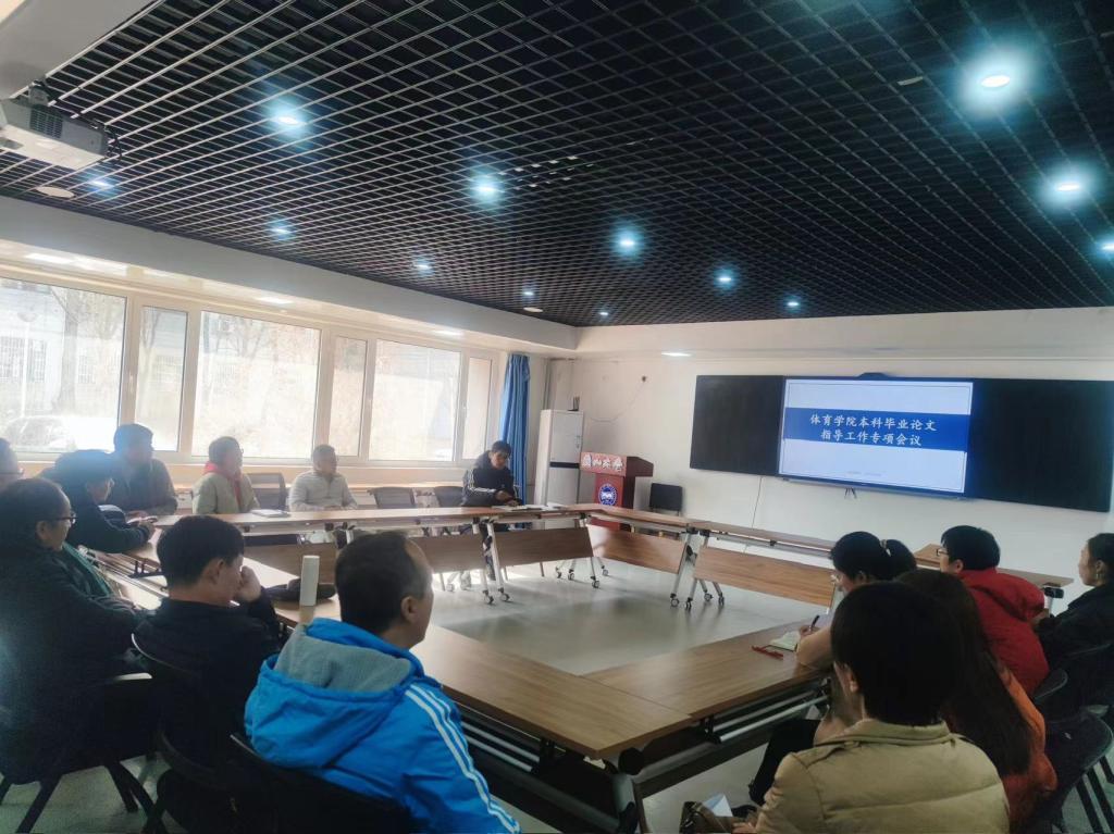 开题答辩会之前,体育学院召开本科毕业论文指导工作专题会议,会议由社会体育教研室主任杨敏主持。杨敏老师向各位本科生毕业论文指导教师详细介绍了《社会体育专业本科毕业论文工作管理办法》的内容,强调要进一步强化本科生毕业论文工作的过程管理,明确指导教师职责。指导老师要及时掌握学生论文进度,对学生毕业论文各个环节进行深入细致的指导,及时帮助学生解决论文写作过程中遇到的困难,确保毕业论文高质量完成。