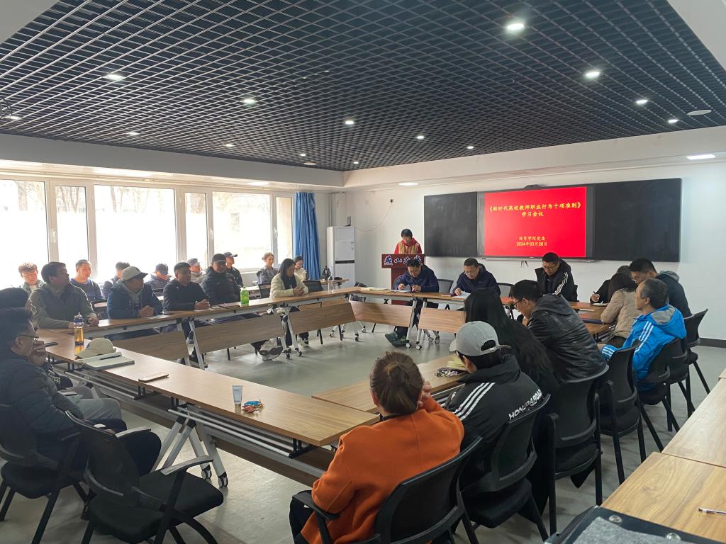 为深入推进教师队伍建设,提升教师的职业道德和行为规范,3月28日学院组织全体教师集中学习《新时代高校教师职业行为十项准则》。