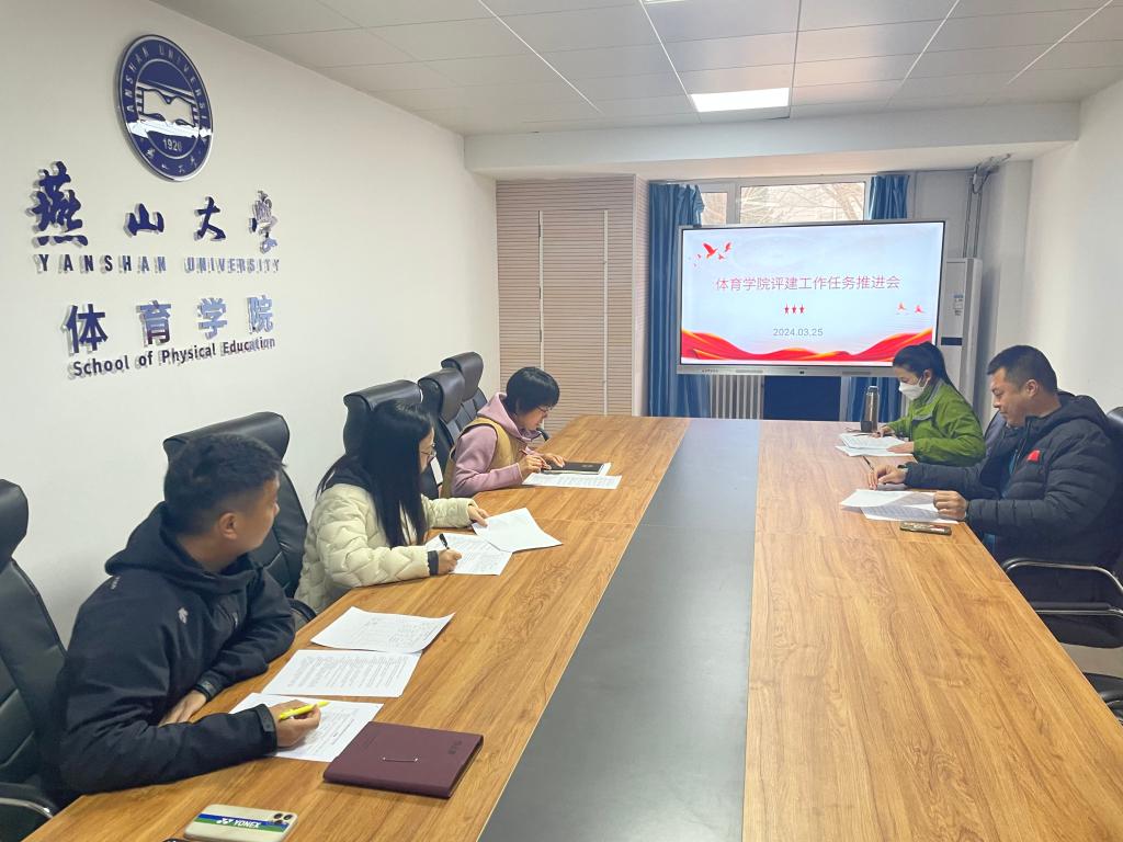 《关于进一步做好学院审核评估自评自建整改工作的通知》相关要求,为系统推进新一轮本科教育教学审核评估工作,3月25日下午,体育学院学院在体育馆109室召开了本科教育教学审核评估推进会。学院社会体育教研室、公共体育教研室主任及副主任和教务科负责人等参加会议,会议由副院长林琴琴主持。