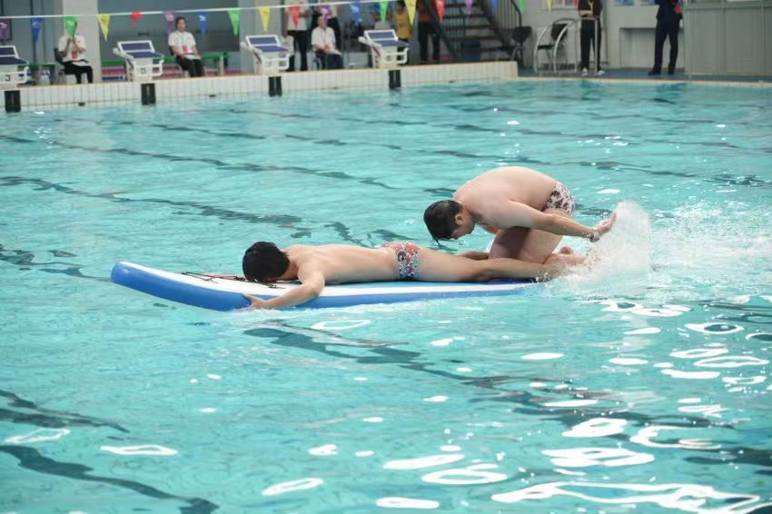 我校体育学院陈彦龙老师参加了本次比赛,与世界救生大赛冠军同台竞技,奋勇拼搏,充分发挥了体育人的拼搏精神,经过2天的激烈角逐,夺得男子50米全能救生预赛第二名的成绩,并在个人总决赛积分中排名第四获得二等奖。此次比赛结束后,陈彦龙老师将于10月20日在北京水立方参加全国体育行业职业技能竞赛总决赛。