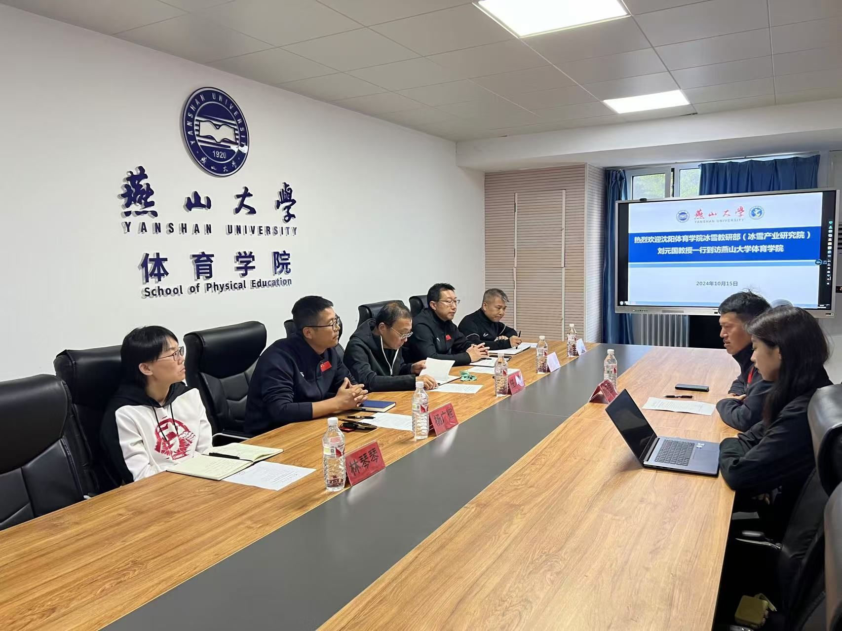 为全面深入系统地做好冰雪人才教育,提升培养层次、促进与兄弟院校的合作交流,积极探索内涵建设、特色发展。10月16日下午,沈阳体育学院冰雪教研部(冰雪产业研究院)副主任刘元国教授一行到访我校体育学院。就冰雪运动的开展、人才培养、专业内涵建设、研究生培养等方面开展座谈交流,体育学院党委书记任海、体育学院院长杨广辉、副院长赵猛、林琴琴、党委副书记赵宁参加会议。