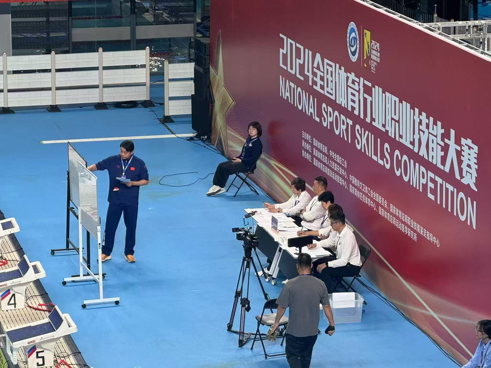 10月19日,由国家体育总局、中华全国总工会联合主办,北京英东游泳馆举办的全国示范性劳动竞赛——2024(第六届)全国体育行业职业技能大赛总决赛在国家奥林匹克体育中心拉开帷幕。大赛以“岗位技能练兵,服务全民健身”为主题,设置了“社会体育指导(健身)”和“游泳救生”两个项目作为正式赛项,共有30个省(区、市)代表队及总局直属机关工会代表队,359名选手参加,全方位展示了体育高技能人才的精湛技艺和职业风采。