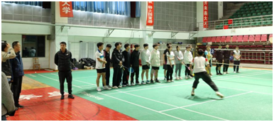 其次,马克思主义学院老师们实地查看体育专项课堂中思政融合情况,并与多位老师交流体育专业人才培养特色,如何设计思政教学点的相关经验。王玉荣老师首先对几位老师思政教学改革的热情、工作成绩进行了充分肯定,也对老师们提出的思政教学的一些疑问给予认真解答,与老师们进行充分的交流与研讨。