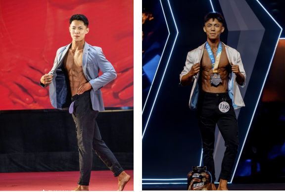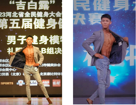 蜕变的关键在于良师指引。2021年,在健身健美专项课上,田宇霖遇见了他的伯乐——曾获亚洲冠军的健身健美国际级运动健将刘颖老师。在刘颖老师的系统指导下,他的成长驶入快车道,实现了赛场进阶:2023年8月初登张家口健身健美公开赛舞台,便一举斩获男子健身模特A组(公开组)亚军,崭露头角;2023年10月挑战河北省健身健美总决赛,荣获男子健身模特A组(大学生组)季军,实现自我突破的第二步;2024年5月在河北省大学生健身健美联赛中实现质的飞跃,勇夺男子健身模特A组冠军及全场总冠军。从地方赛事到国家级舞台,从公开组到大学生组、青年组,每一枚沉甸甸的奖牌,都铭刻着他奋斗的印记。